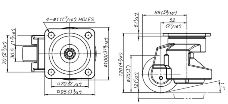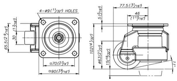 1.腳輪座:碳鋼沖壓