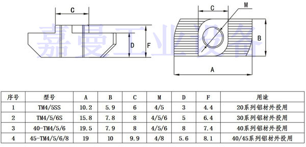 用    途:組裝型材的常用螺母或在漏裝,